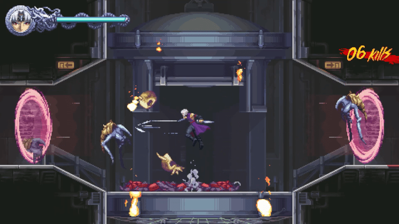 NINJA GAIDEN: Ragebound’s demon-slaying tale weaves between the journeys of the two ninjas, delivering exhilarating, monster-ridden levels unique to each character as well as challenges requiring the creative use of their fusion.