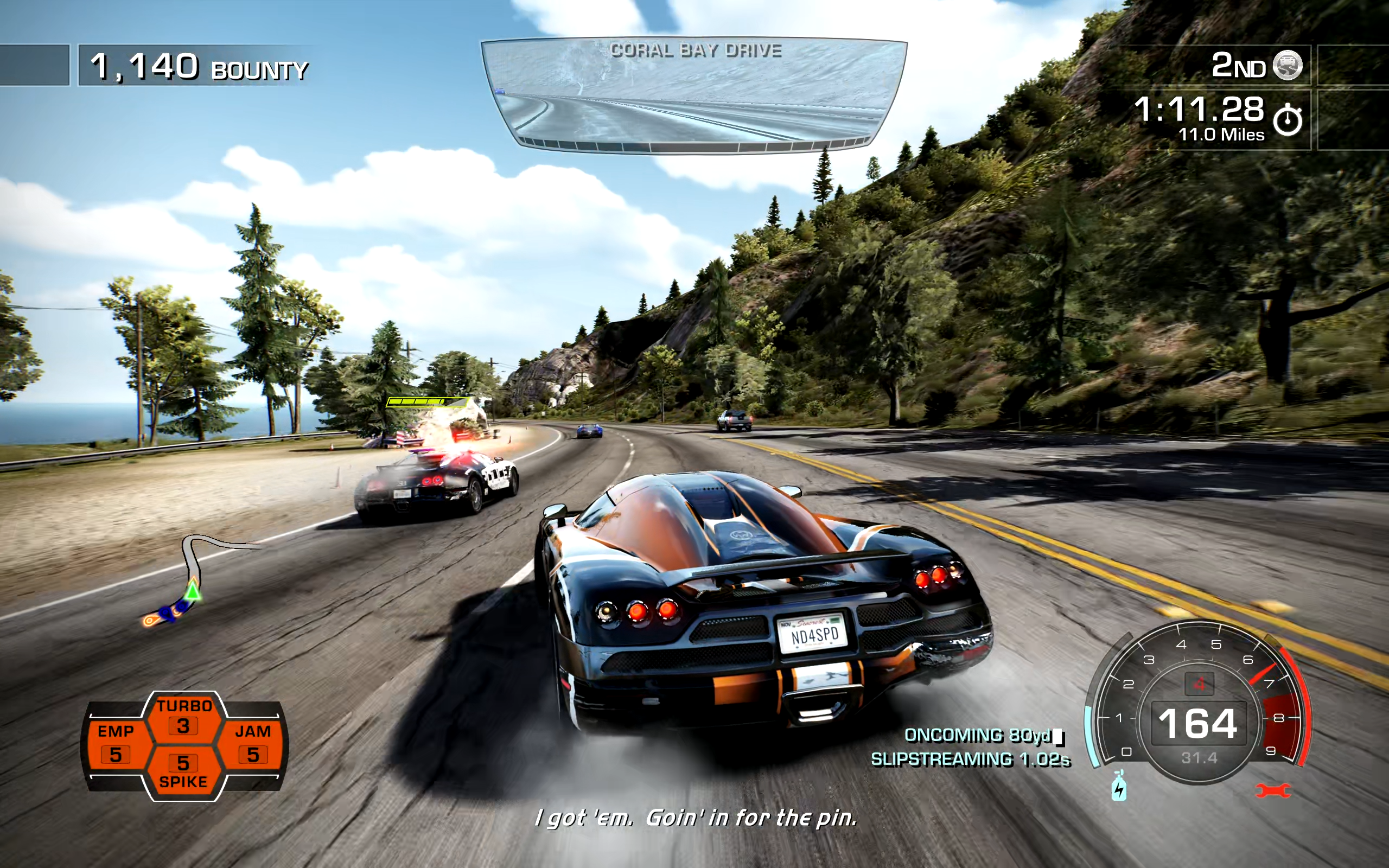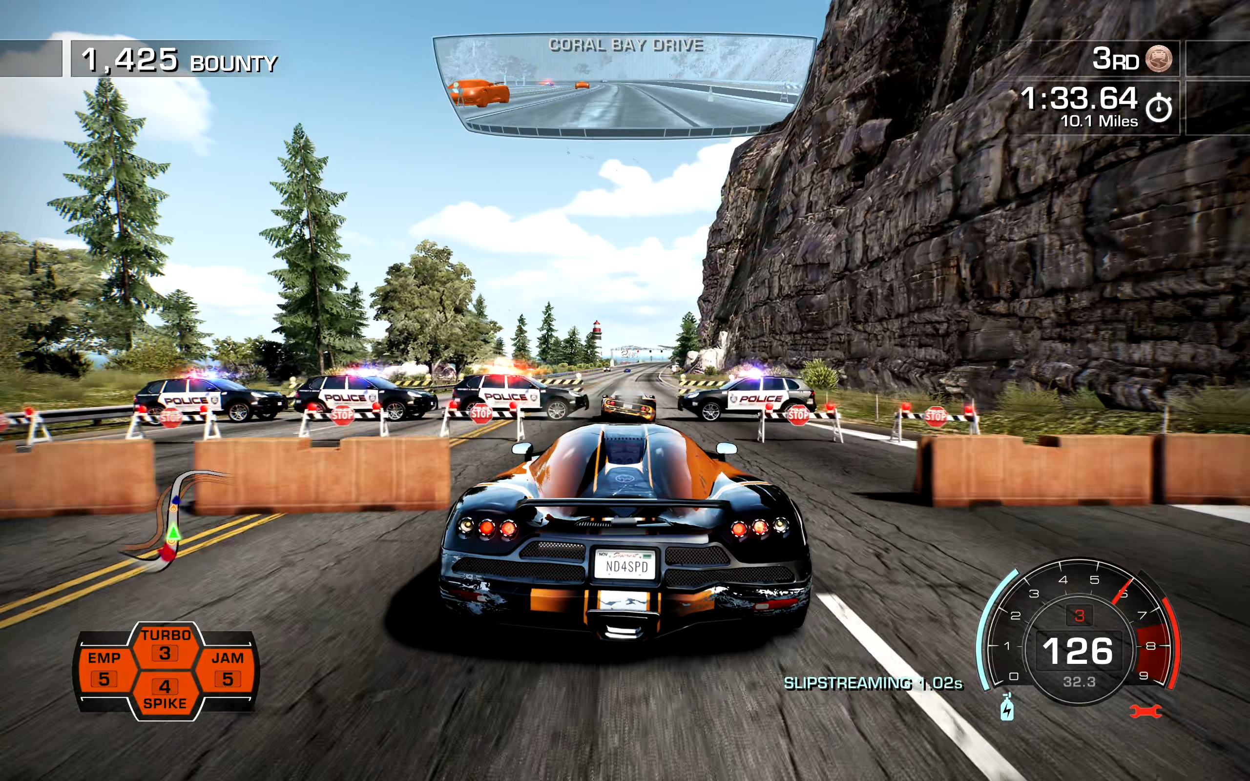 My racing drastically improved once I started doing two things: the first was learning how to powerslide well. The second is not taking my eyes off the road. Too often, I would get distracted looking at my UI to see how much boost I had, how many street spikes and EMPs I had left, etc. Once I cut down on doing that, there was a noticeable improvement in my racing. It’s not as easy as it looks avoiding civilian vehicles while going 175 MPH. You get going very fast, sometimes exceeding 200 mph, and taking your eyes off the road, even for a split-second can spell disaster. This is a Need For Speed game and it lives up to its moniker.